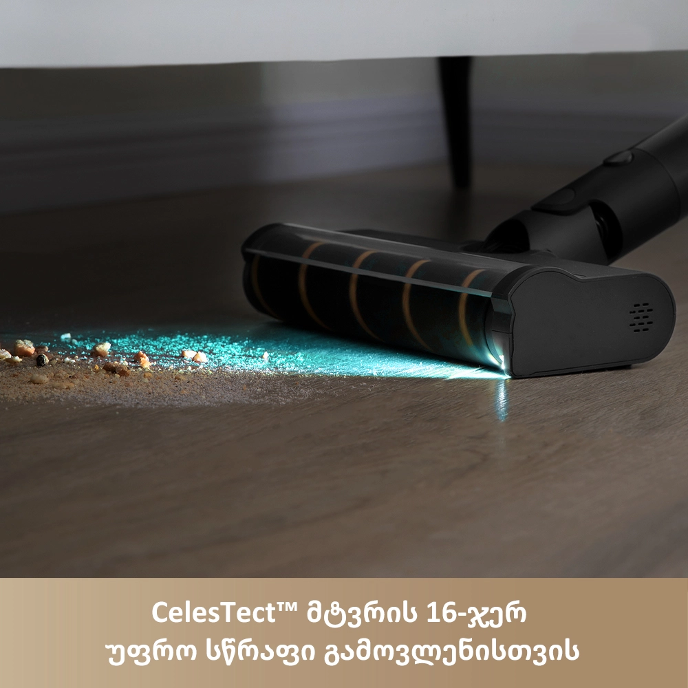 - შესრუტვის მაღალი სიმძლავრე (20,000 Pa) — მტვრისა და ნარჩენების ეფექტური მოცილება ნებისმიერი ზედაპირიდან.